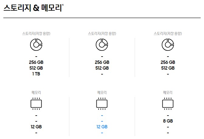 갤럭시 s24 울트라 · 플러스 · 기본형 스토리지 & 메모리