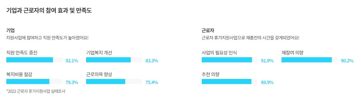 세계 행복지수가 59위인 대한민국입니다. 대기업에서는 복지문화가 많이 개선되고 혜택을 주고 있으나 여전히 중견기업과 중소기업에서는 복지 수준이 대기업의 반도 못 따라가는 실정이라 정부에서 나서서 이렇게 근로자휴가지업사업을 추진하는 것입니다.