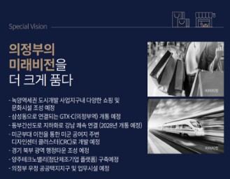 일곱. 서울-양주 고속도로 계획 2030년 계통 목표로, 서울 경계부터 양주까지 21.6km 왕복 4차로 고속도로 건설 사업이 잡혀 있습니다. 여덟. CRC 디자인클러스트 2030년 완공 목표로, CRC 미군공여지를 도시비전으로 반영한 디자인센터, 디자인스쿨, 아트플랫폼, 레저파크로 조성계획이 잡혀있습니다.