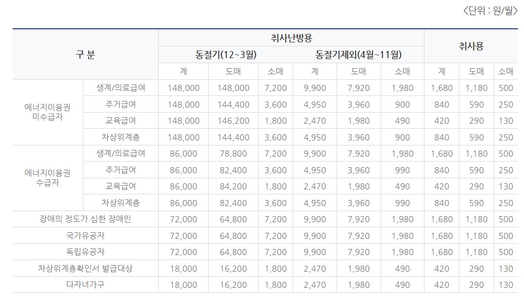 - 기초생활수급자, 차상위계층, 장애인, 국가유공자, 독립유공자, 다자녀 가구 등 해당