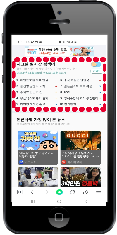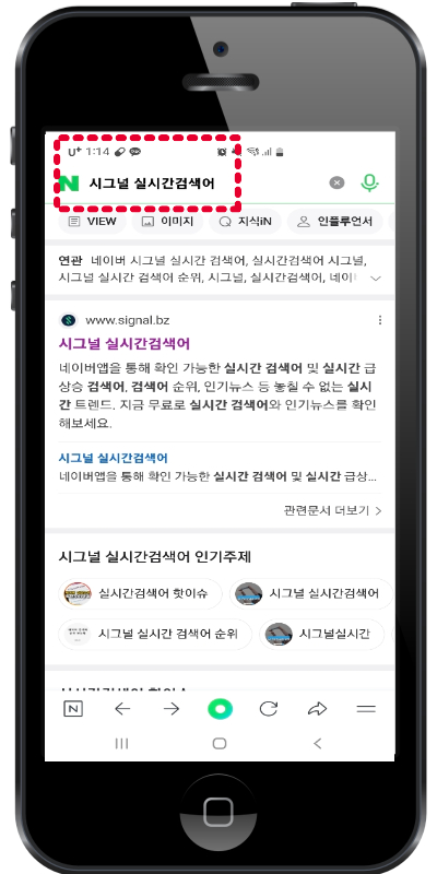 1. 모바일 검색창에 '시그널 실시간검색어'이라고 적습니다.