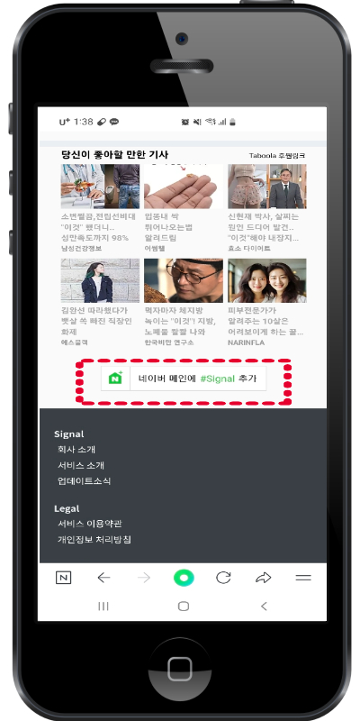 3. 네이버 메인에 #signal 추가를 클릭해 주셔요.