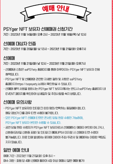 티켓 예매 일정 선예매 - PSY ger NFT |