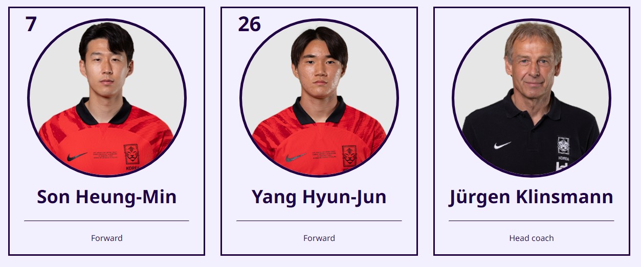 한국 : FIFA 랭킹 23위 / 감독 : 위르겐 클린스