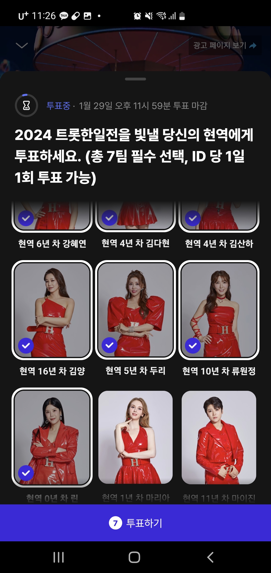 4. 내가 응원하는 현역 7팀을 선택하시고 맨 아래쪽 투표하기를 눌러주세요.