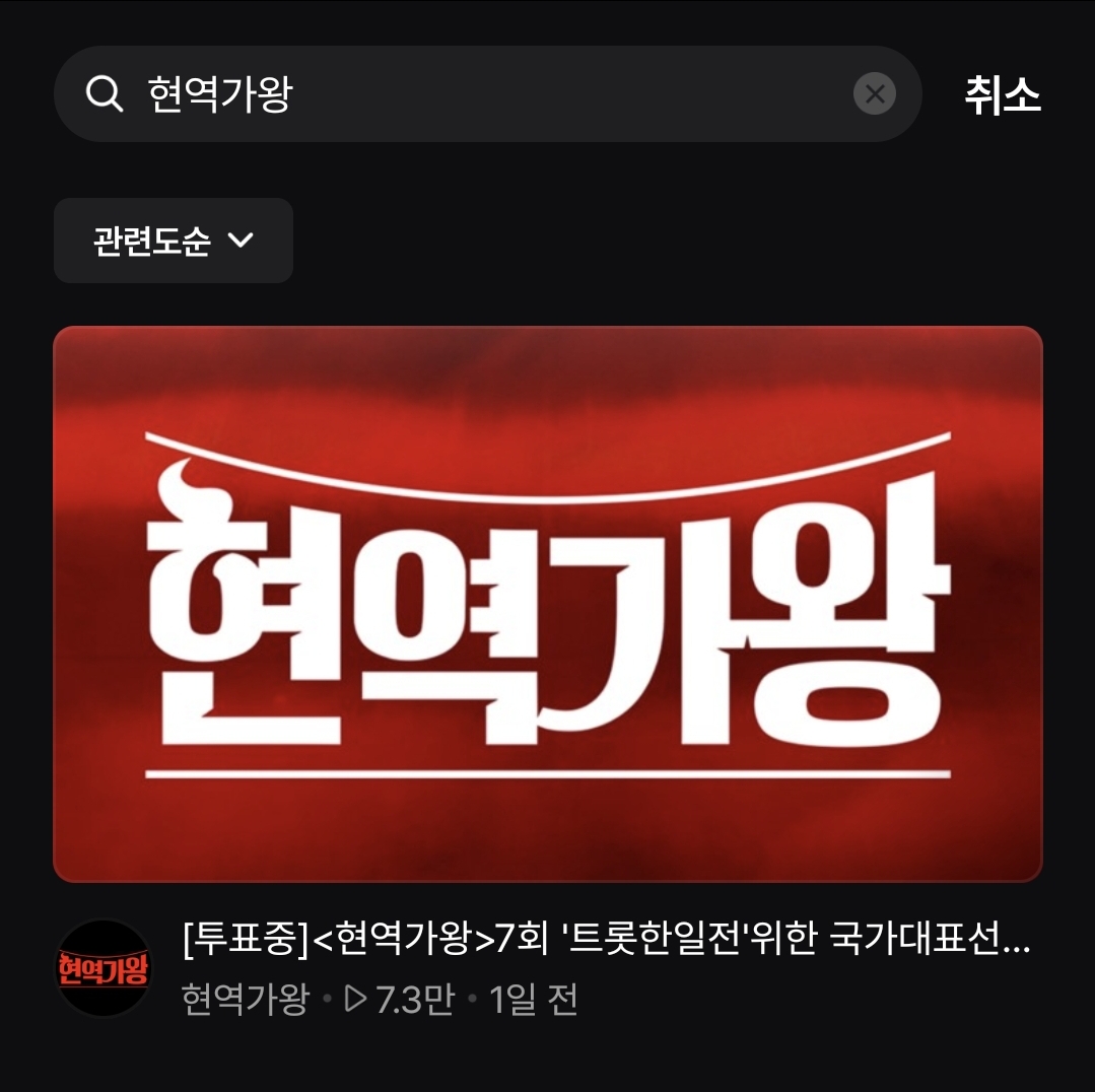 2. 검색창에 현역가왕을 검색하신 후 LIVE 라이브 화면을 클릭해 주세요.