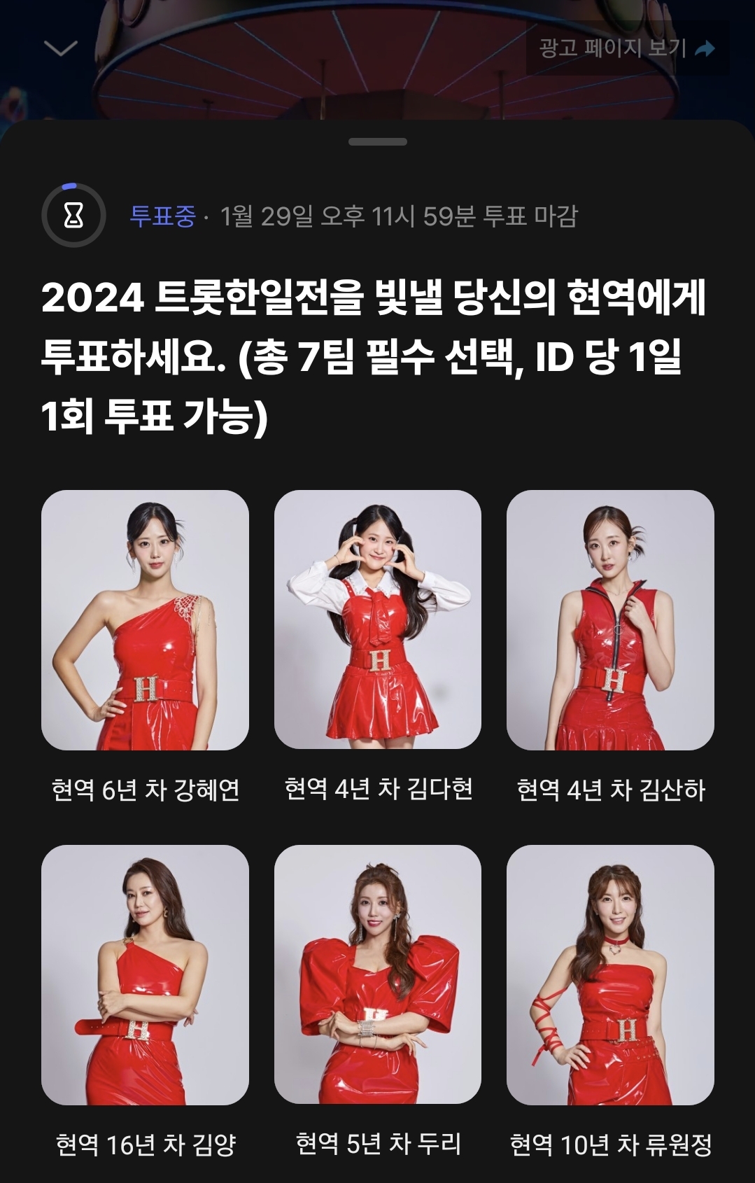 5. ID당 하루에 한 번만 투표 가능하십니다. 투표가 끝나는 1월 29일까지 매일 한 번씩 들러서 열렬한 지지를 투표로 표현해 주세요.